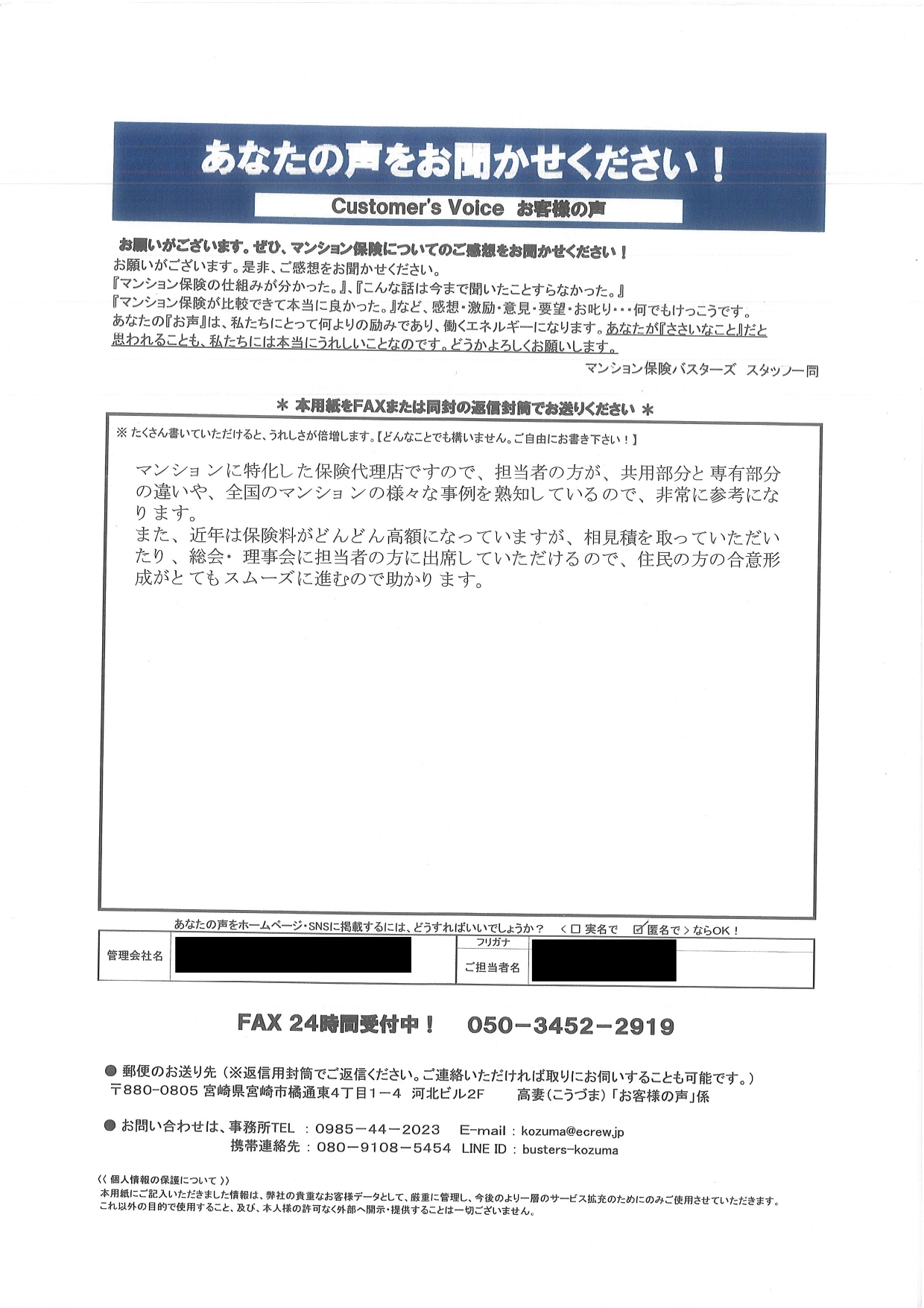 実際にいただいた『お客さまの声⑦』をご紹介します。